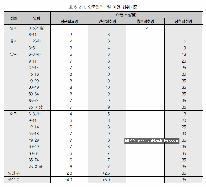 아연, 비타민D, 칼슘,마그네슘 일일 권장량