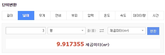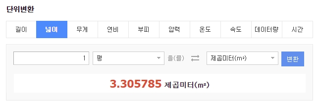 일단 기본적으로 알아본 것이 대략 1평은 몇 m2인가?